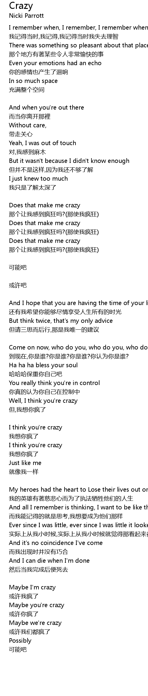 | 我记得当时,我记得,我记得当时我失去理智 | |