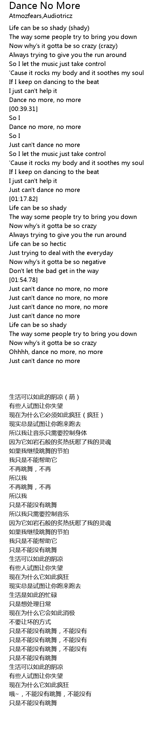 Dance no more, no more |