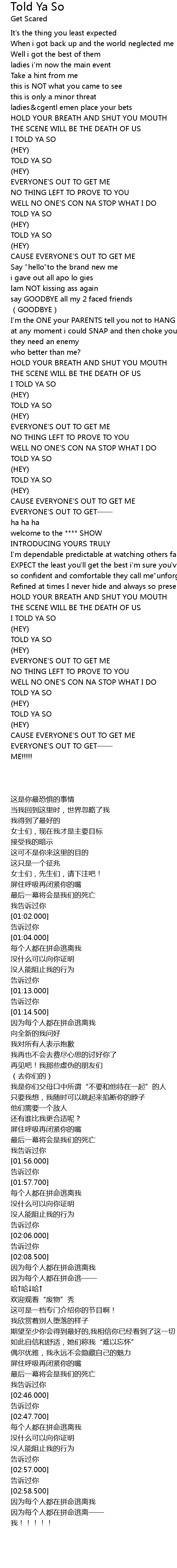| [02:58.000] | TOLD YA SO |