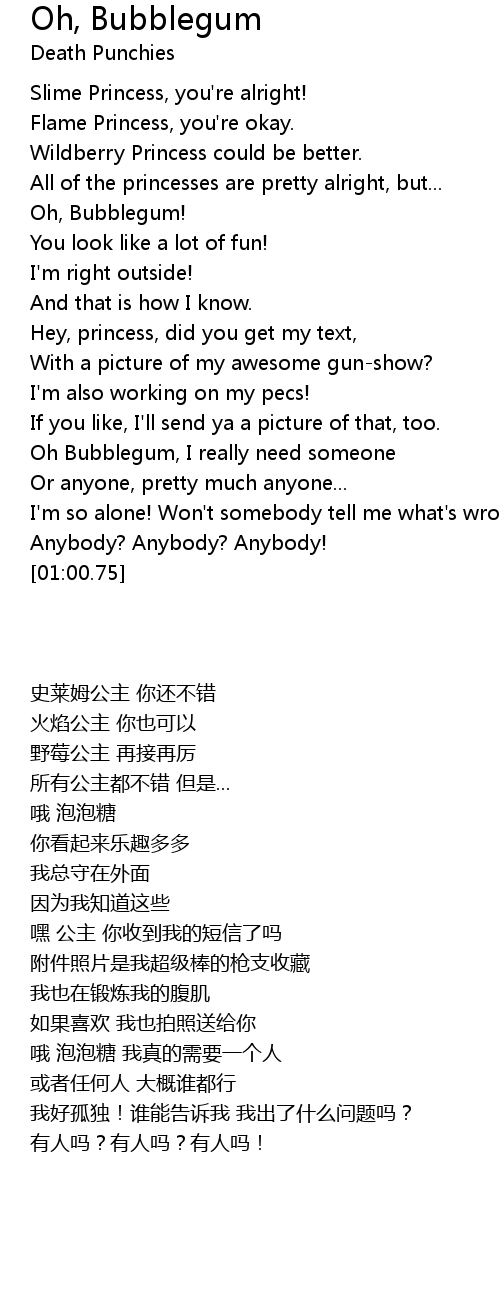 Oh Bubblegum, I really need someone |