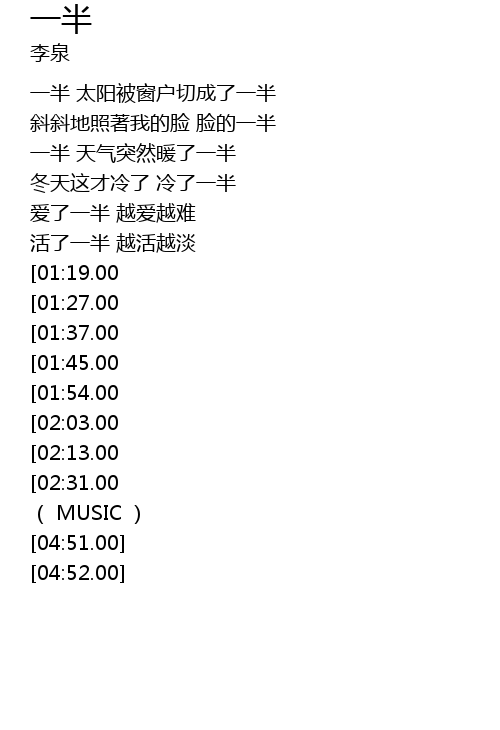 | [03:49.00][01:45.00] | 快乐只有唱了一半 还有一半 |