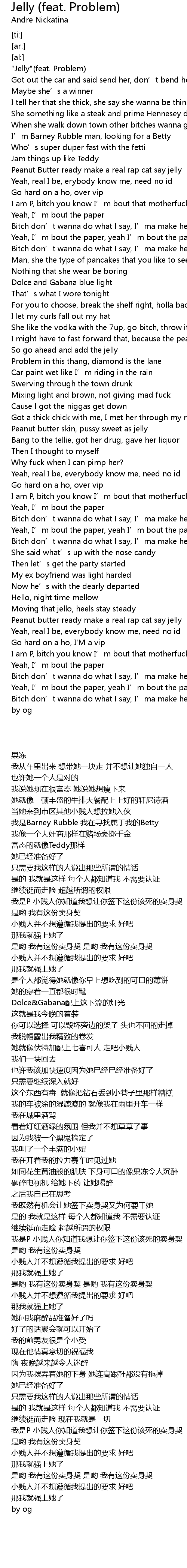 | [00:00.00] | " Jelly" feat. Problem |