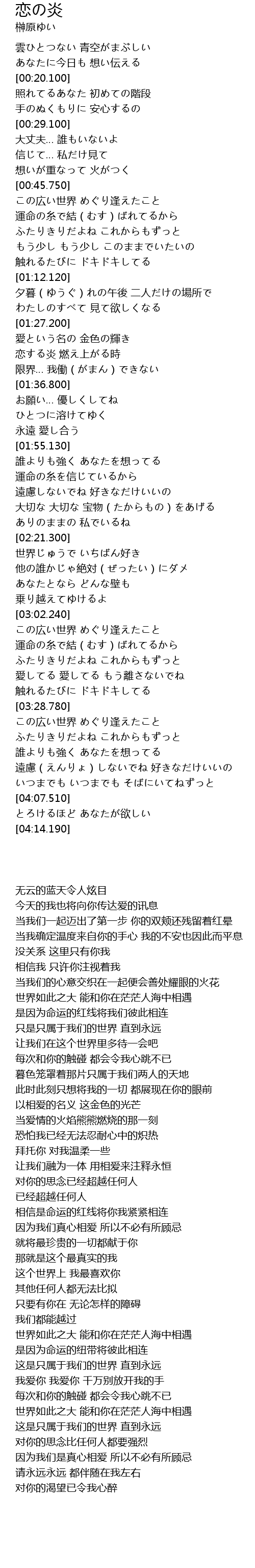 | [01:32.470] | 恋する炎 燃え上がる時 |