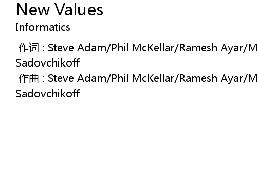 | [00:00.000] | 作曲 : Steve Adam/Phil McKellar/Ramesh Ayar/Michael Trudgeon/Valek Sadovchikoff |