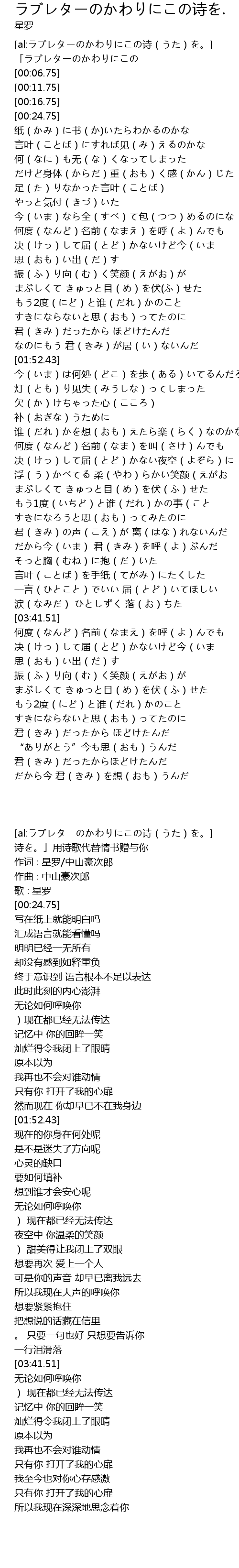 | [al:ラブレターのかわりにこの诗(うた)を。] | |