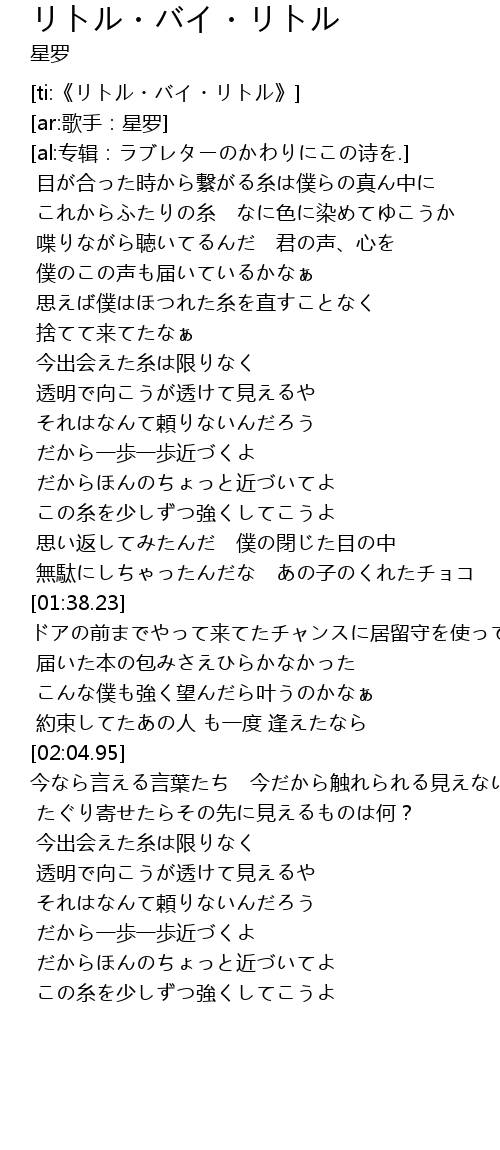 | [02:34.30] | この糸を少しずつ強くしてこうよ |
