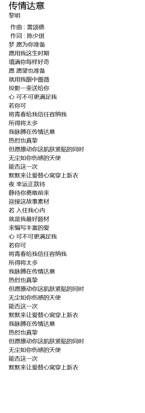 | Song | 传情达意 |