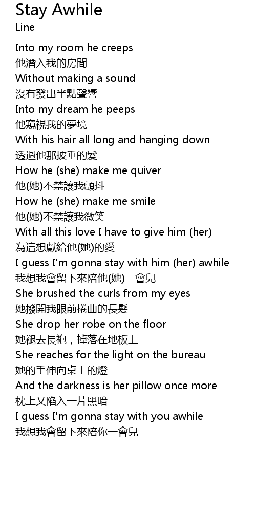 | Song | Stay Awhile |