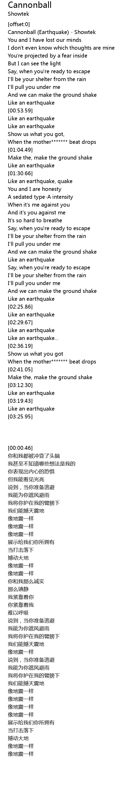 | [00:00.46] | Cannonball Earthquake Showtek |