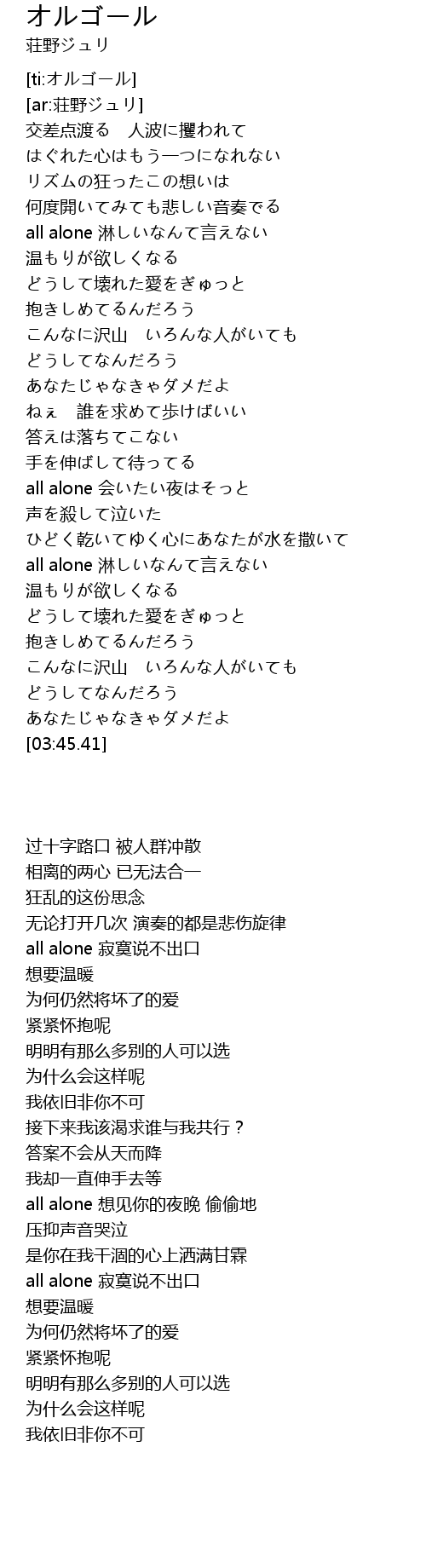 | [02:53.05] | all alone 淋しいなんて言えない |