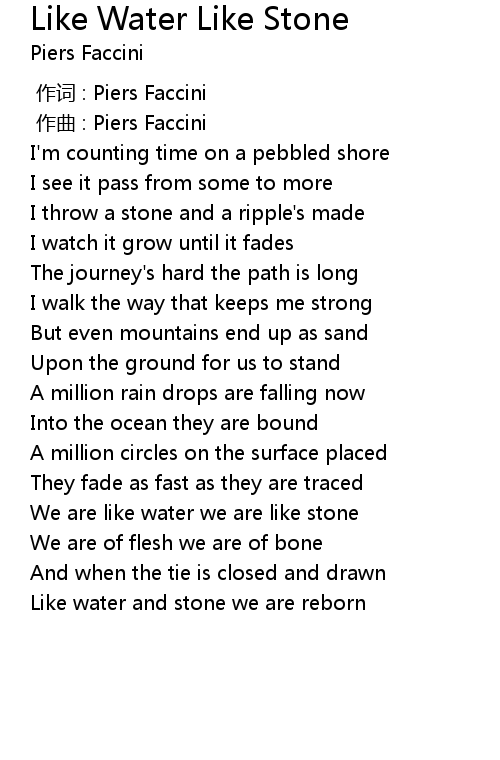 | [00:39.29] | I throw a stone and a ripple' s made |