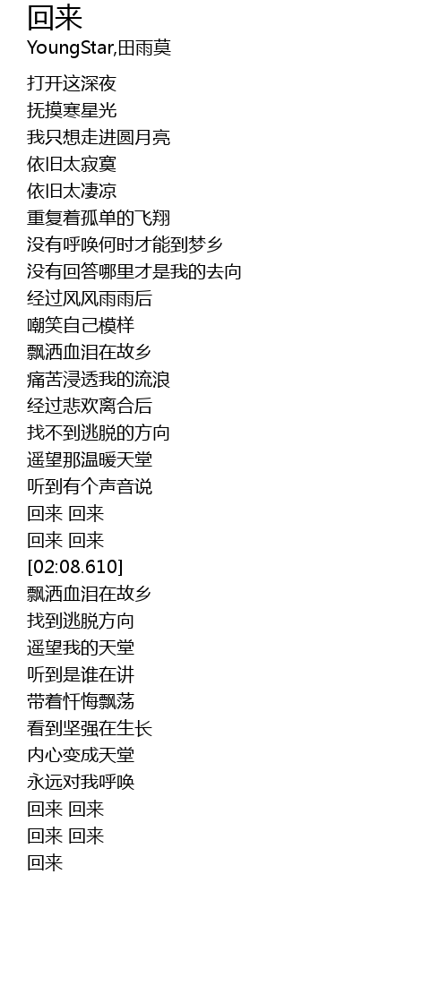 | [02:28.799] | piao sa xue lei zai gu xiang |
