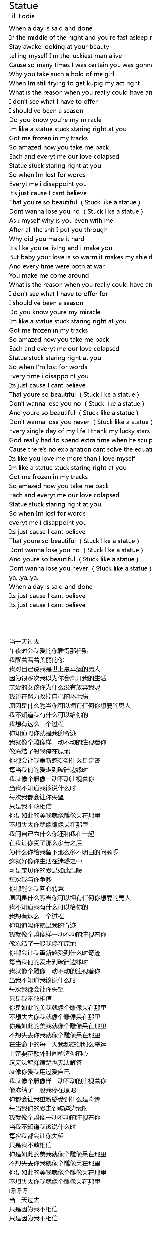 | [02:33.840] | Don' t wanna lose you no Stuck like a statue |