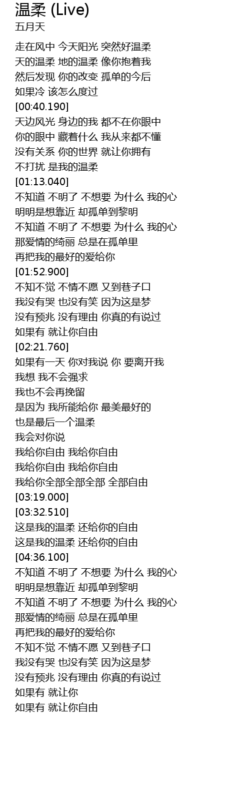 | [03:01.640] | wo gei ni zi you wo gei ni zi you |