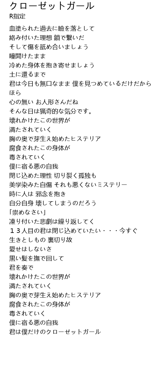 | Song | クローゼットガール |