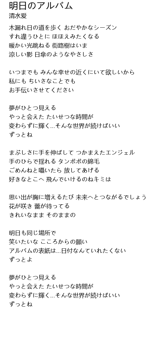 | Song | 明日のアルバム |