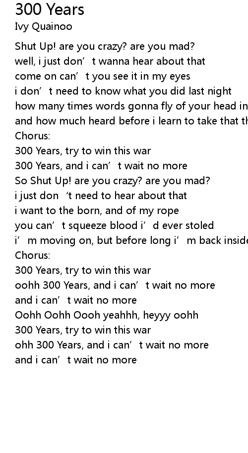| oohh 300 Years, and i can' t wait no more | |