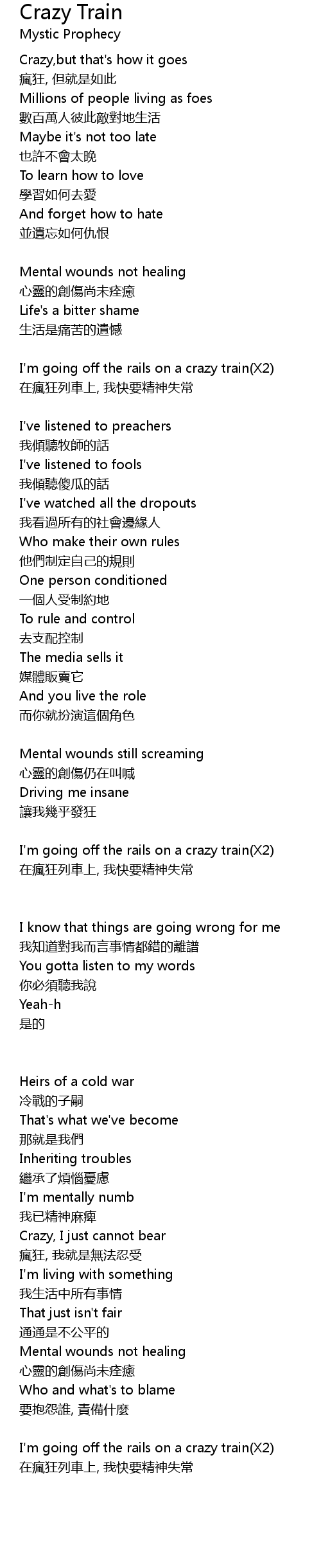 | I'm going off the rails on a crazy train(X2) | |