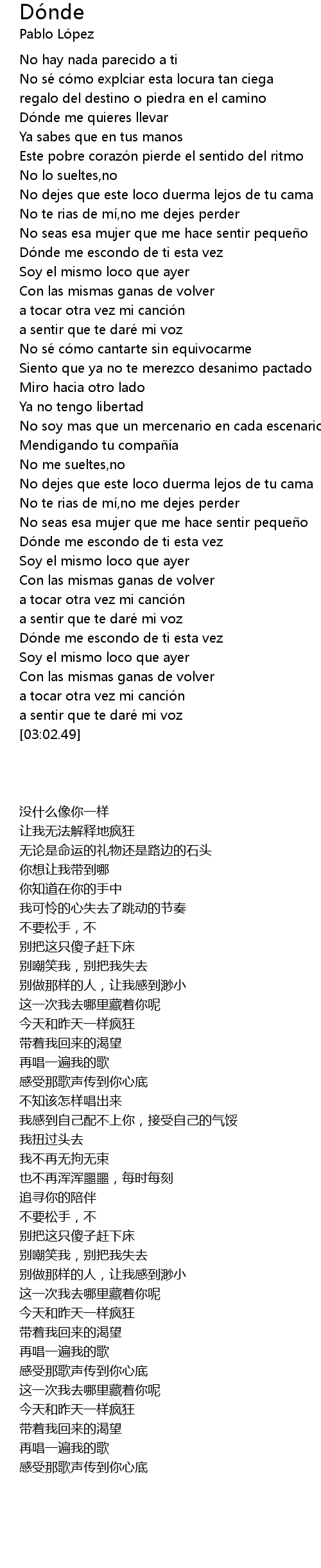 | [00:38.75] | Dó nde me escondo de ti esta vez |