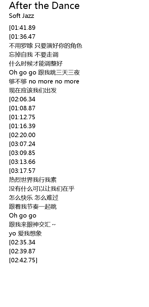 | [03:21.79][03:07.24][02:21.88][01:20.81] | Dance Dance Dance |