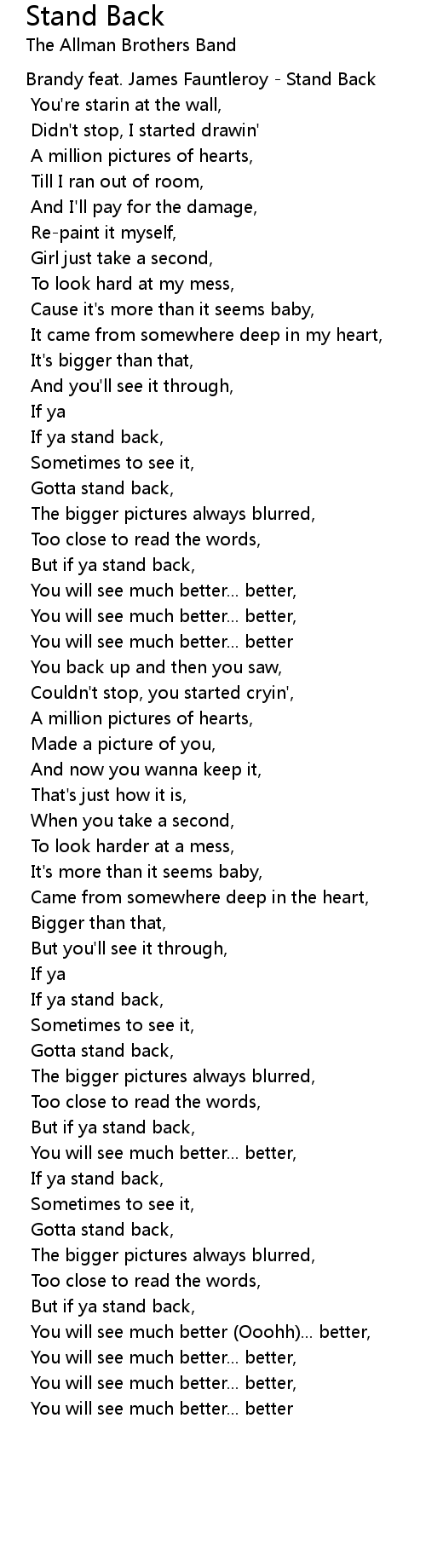 If ya stand back, |