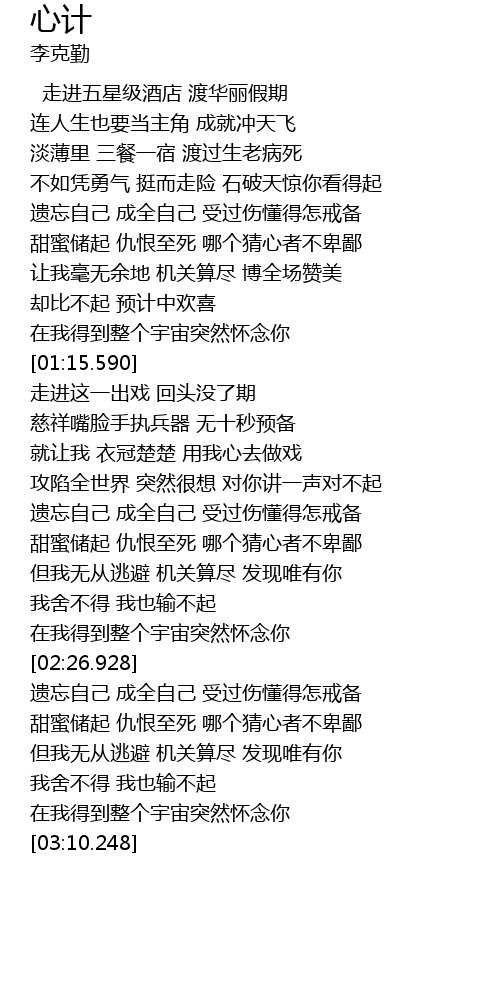 | [00:58.220] | 让我毫无余地 机关算尽 博全场赞美 |