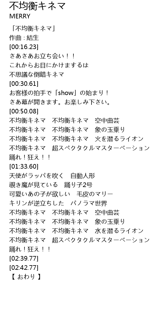 | [00:59.81] | 不均衡キネマ 不均衡キネマ 象の玉乗り |
