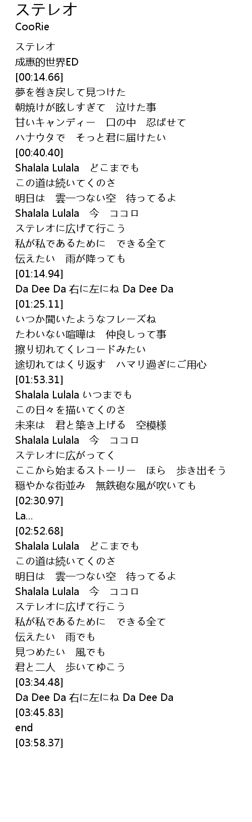 | [03:36.69] | Da Dee Da 右に左にね Da Dee Da |