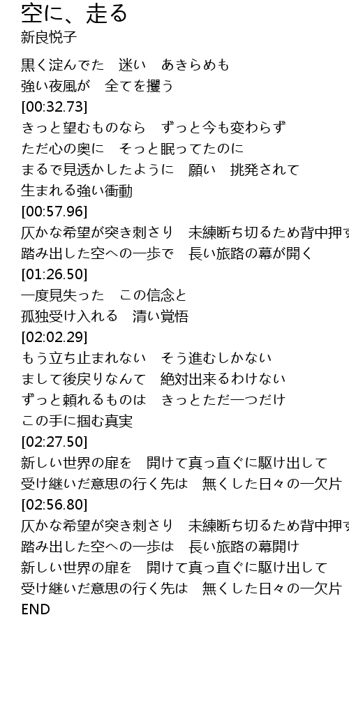 | [03:57.32] | 新しい世界の扉を 開けて真っ直ぐに駆け出して |