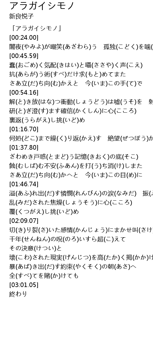| [01:55.34] | 乱(みだ)された焦燥(しょうそう)に心(こころ) |