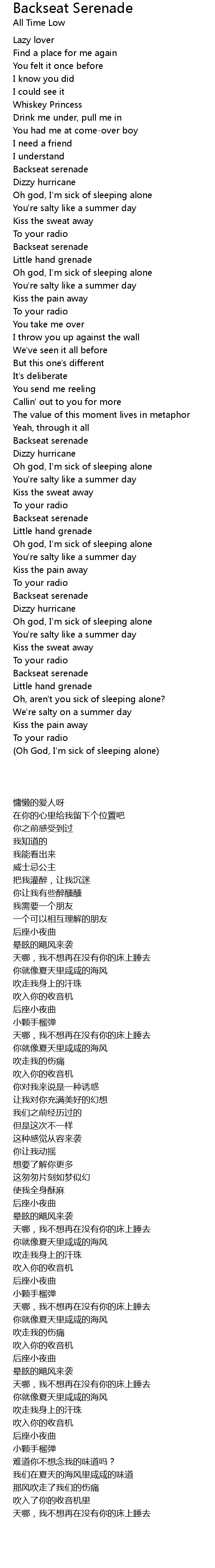 (Oh God, I'm sick of sleeping alone) |