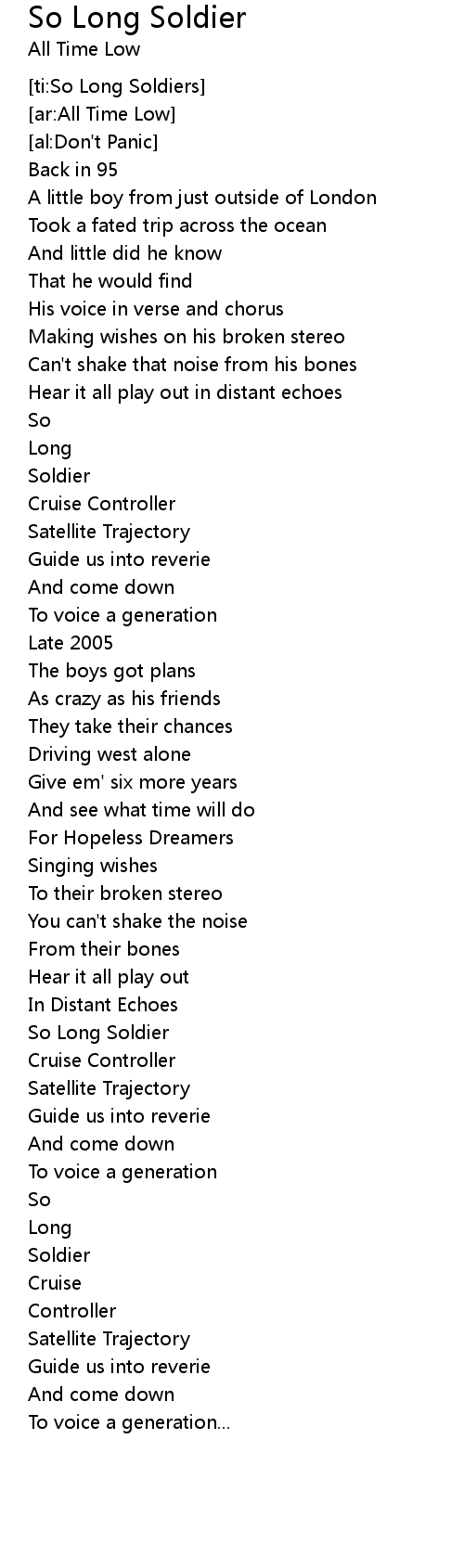 | [ti:So Long Soldiers] | |