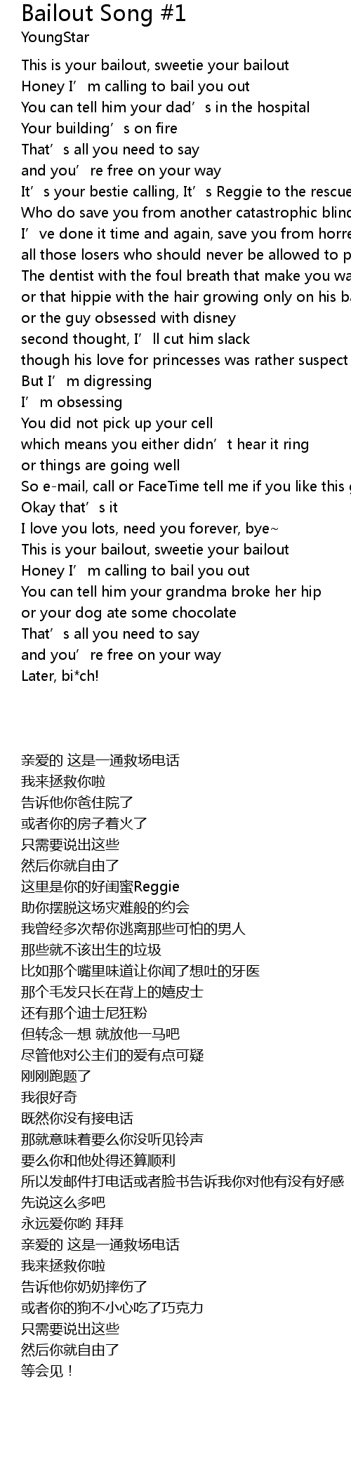 | Song | Bailout Song #1 |