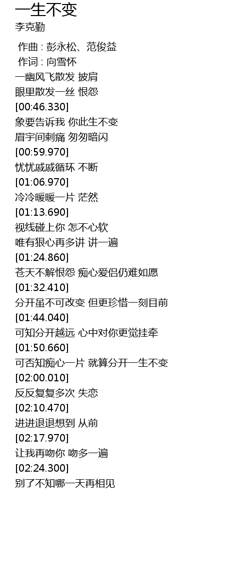 | [00:48.170] | 象要告诉我 你此生不变 |