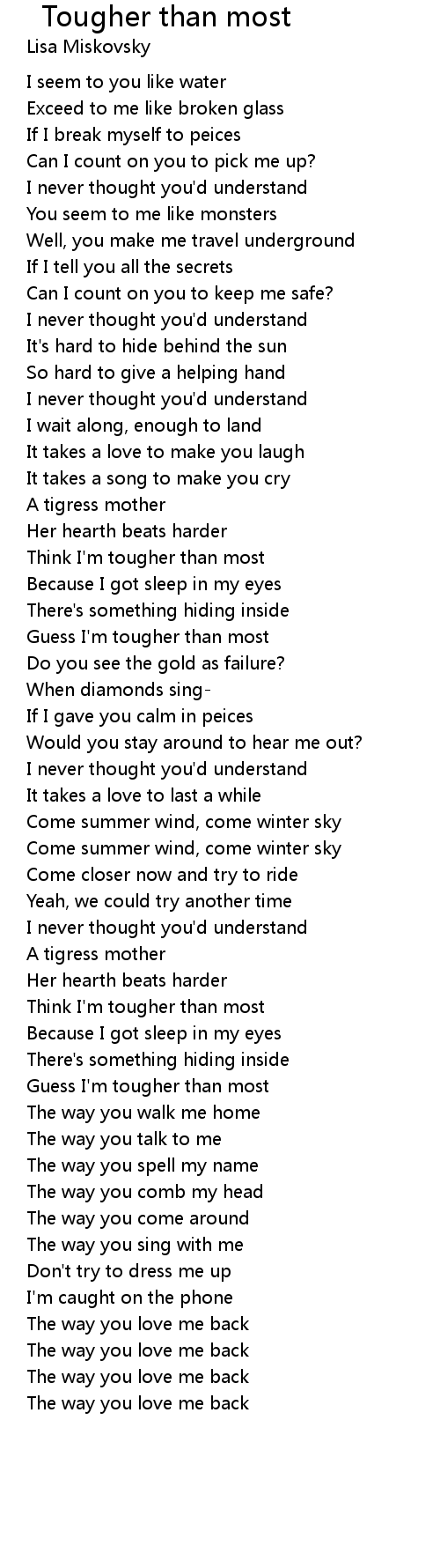 Think I'm tougher than most |