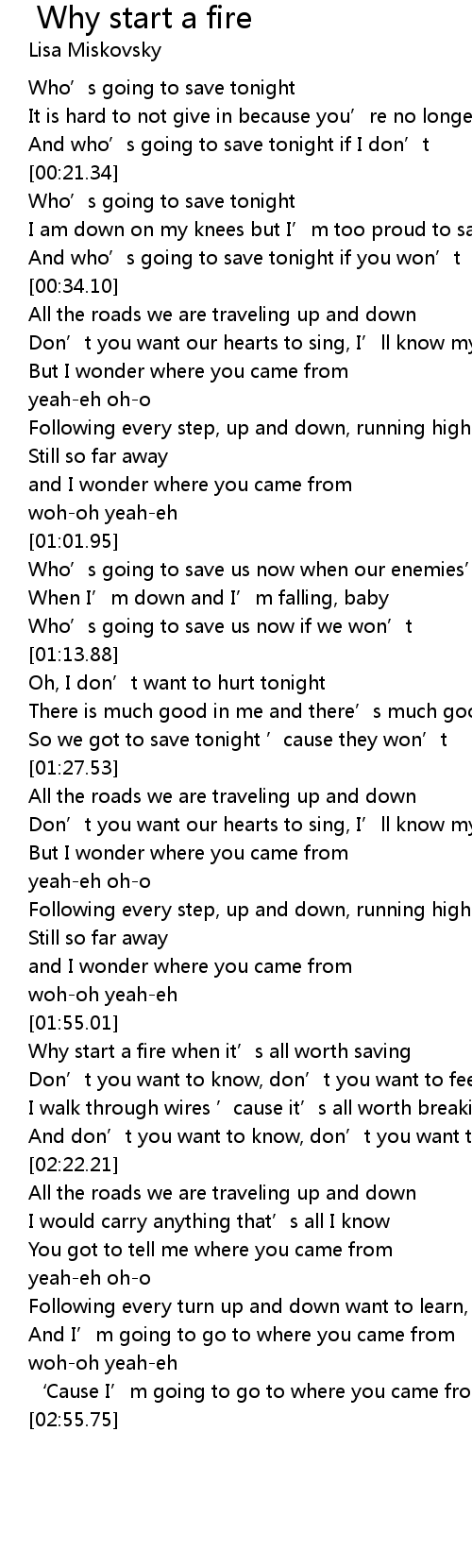 | Song | Why start a fire |