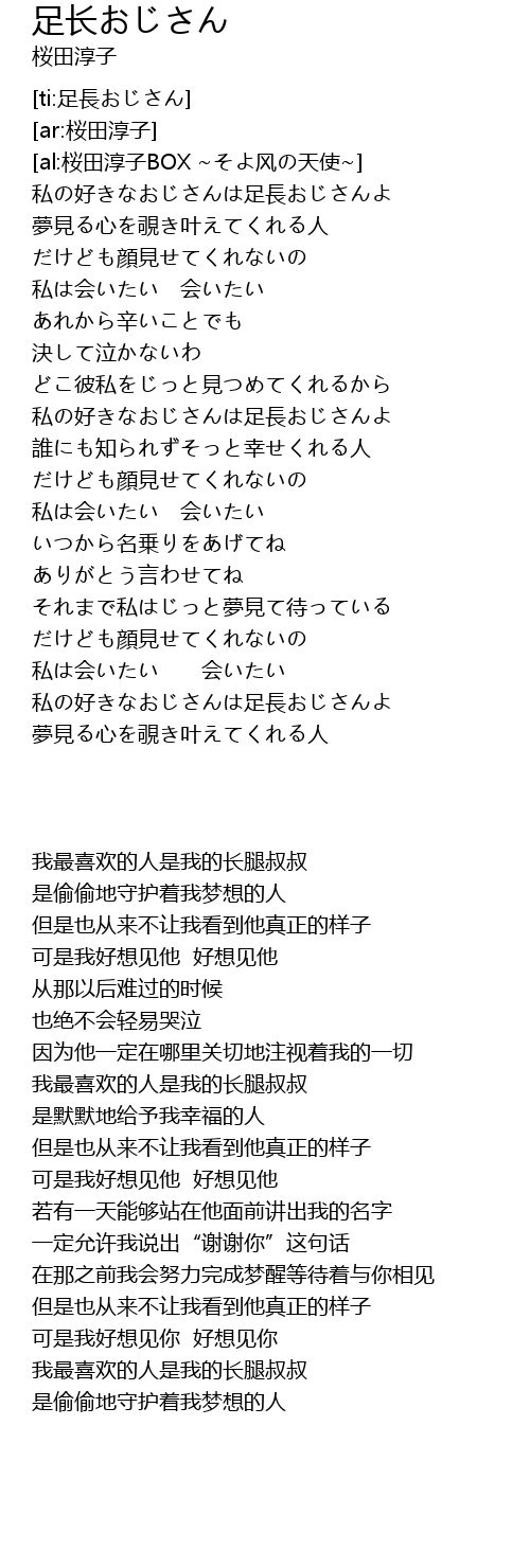 | [02:44.47] | 私の好きなおじさんは足長おじさんよ |