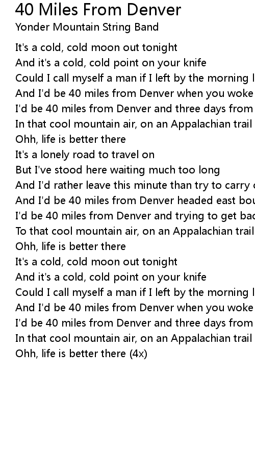 And I'd be 40 miles from Denver when you woke up all alone |