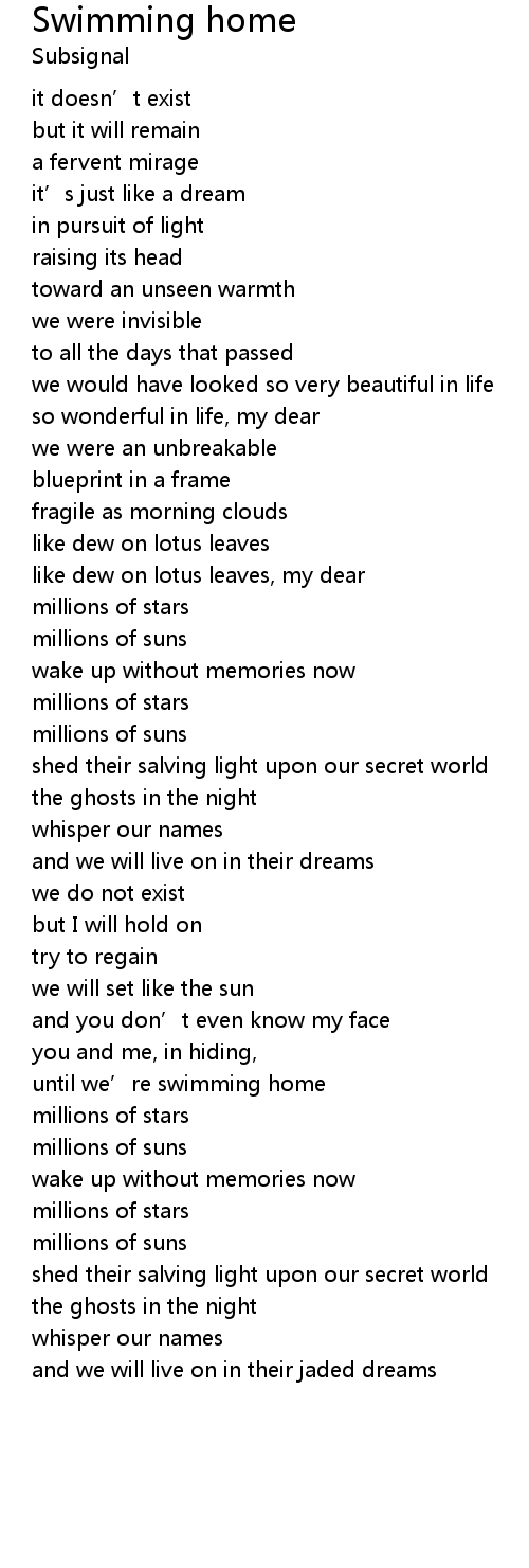 | until we' re swimming home | |
