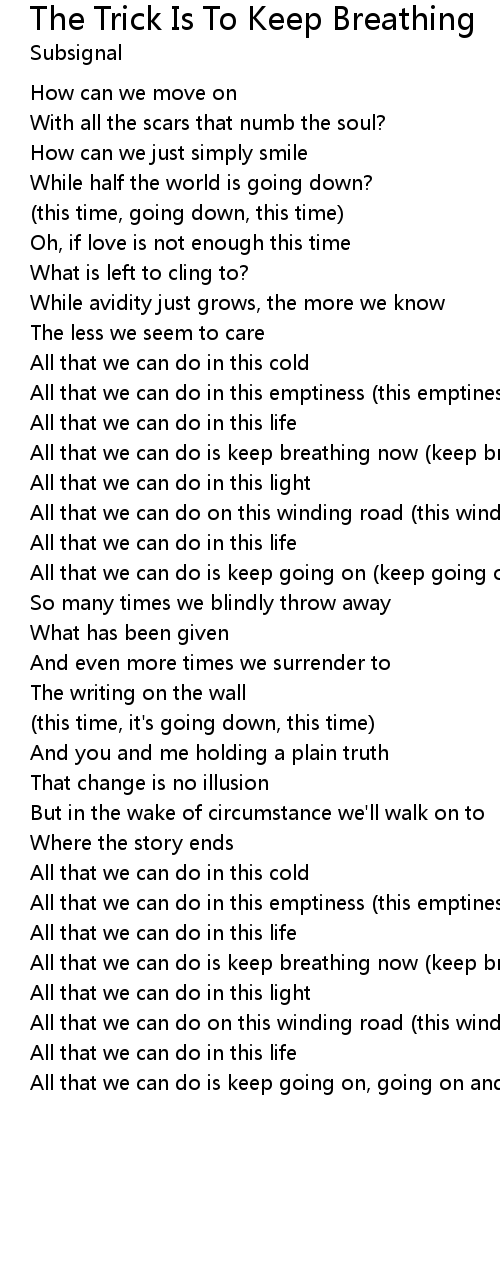 | All that we can do is keep breathing now (keep breathing now) | |
