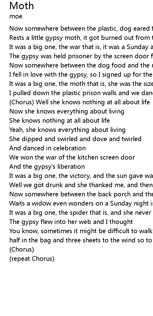 | Rests a little gypsy moth, it got burned out from the war | |