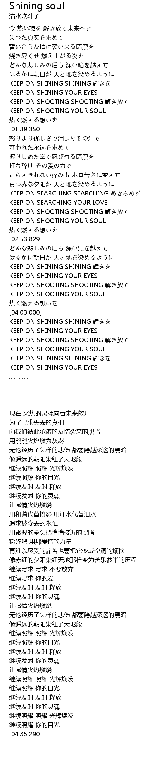 | [01:30.700] | KEEP ON SHOOTING YOUR SOUL |