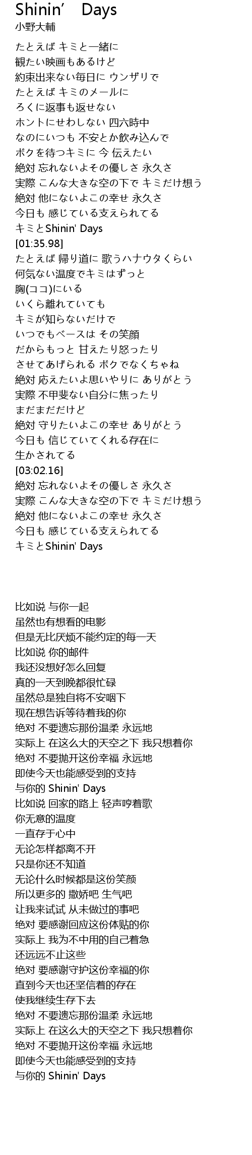 | [01:32.23] | Shinin' Days |