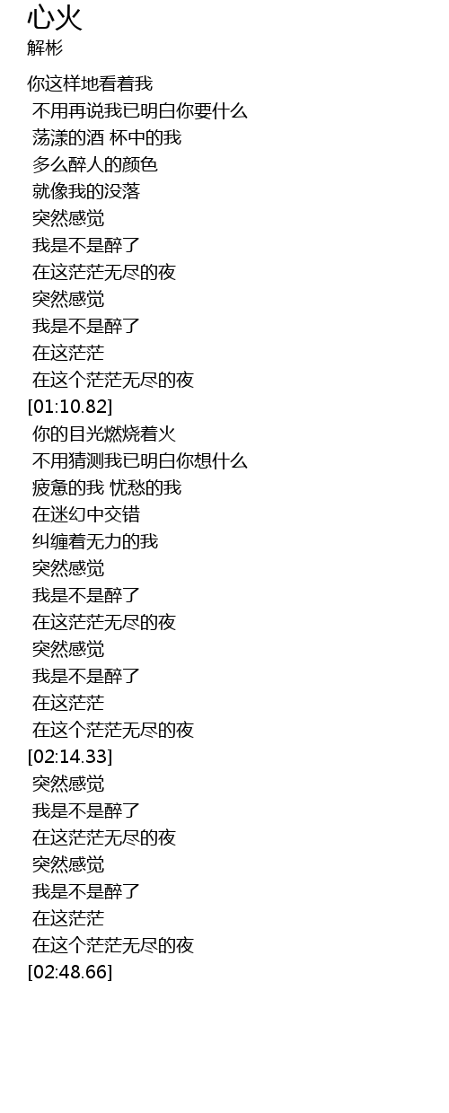 | [01:20.62] | ni de mu guang ran shao zhao huo |