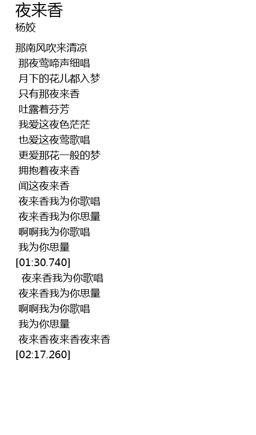 | [01:59.630] | 夜来香夜来香夜来香 |