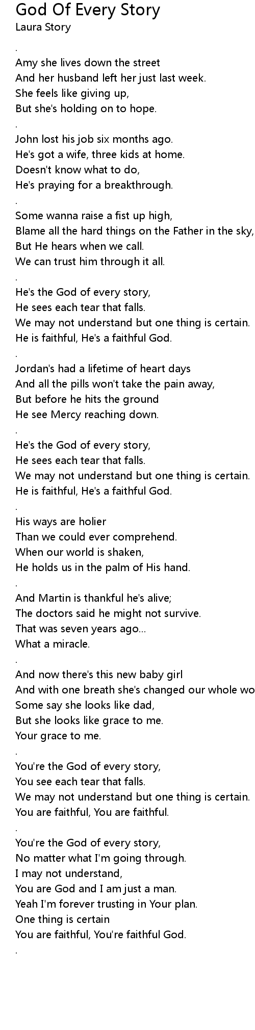 He's the God of every story, |