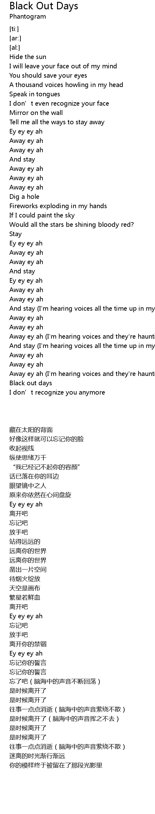 | [02:58.28] | Away ey ah (I'm hearing voices and they're haunting my mind) |