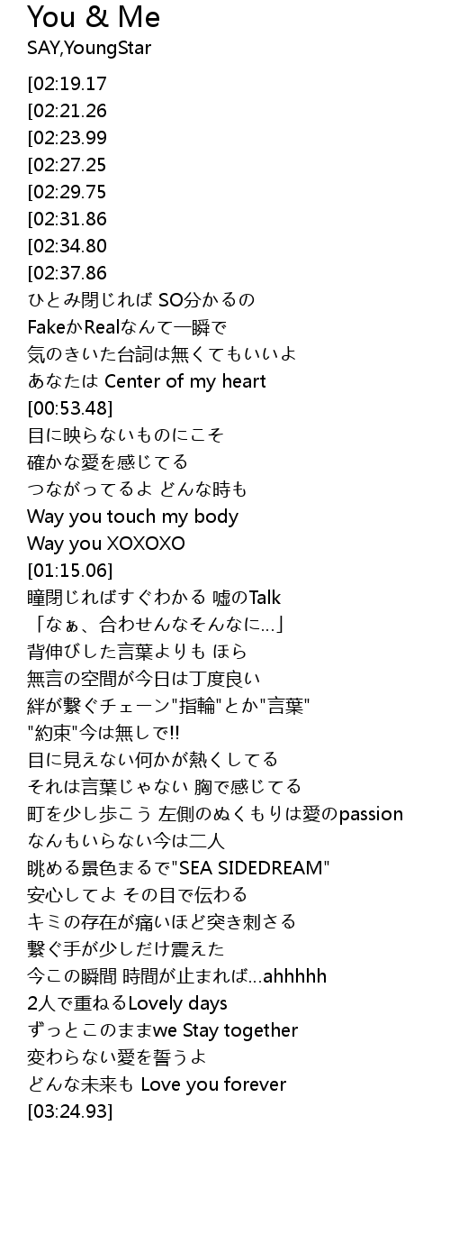 | [02:45.01] | ずっとこのままwe Stay together |