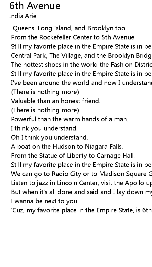 'Cuz, my favorite place in the Empire State, is 6th Avenue. |