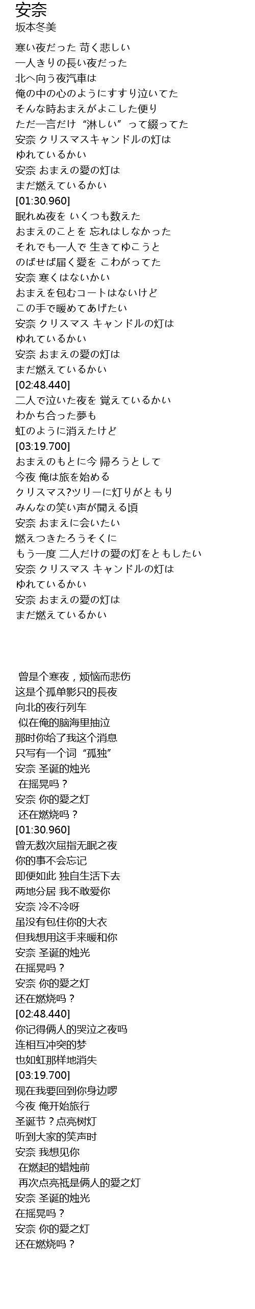 | [04:09.440] | 安奈 クリスマス キャンドルの灯は |